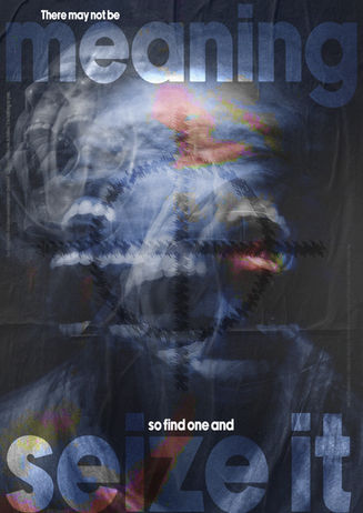 "There may not be meaning, so find one and seize it", featured on the poster, is a direct quote from the song. Featured in smaller lettering along the sides of the poster in the top left and bottom right are two lines featured within the bridge where his mind and the vocalist are competing, his mind saying "Be done with this now and jump off the roof, Can you hear me Achilles? I'm talking to you" as the vocalist says "Be done with this now and get off the roof. Can you hear me Achilles? I'm talking to you".